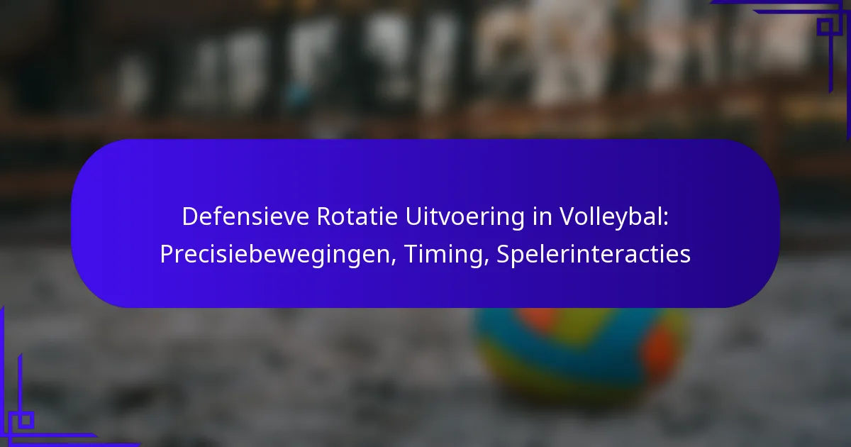 Geavanceerde tactieken voor het uitvoeren van defensieve rotaties in volleybal omvatten nauwkeurige bewegingen, timing en effectieve interacties tussen spelers. Deze strategieën verbeteren het vermogen van een team om zich aan te passen aan verschillende tegenstanders en de algehele defensieve prestaties te verbeteren.